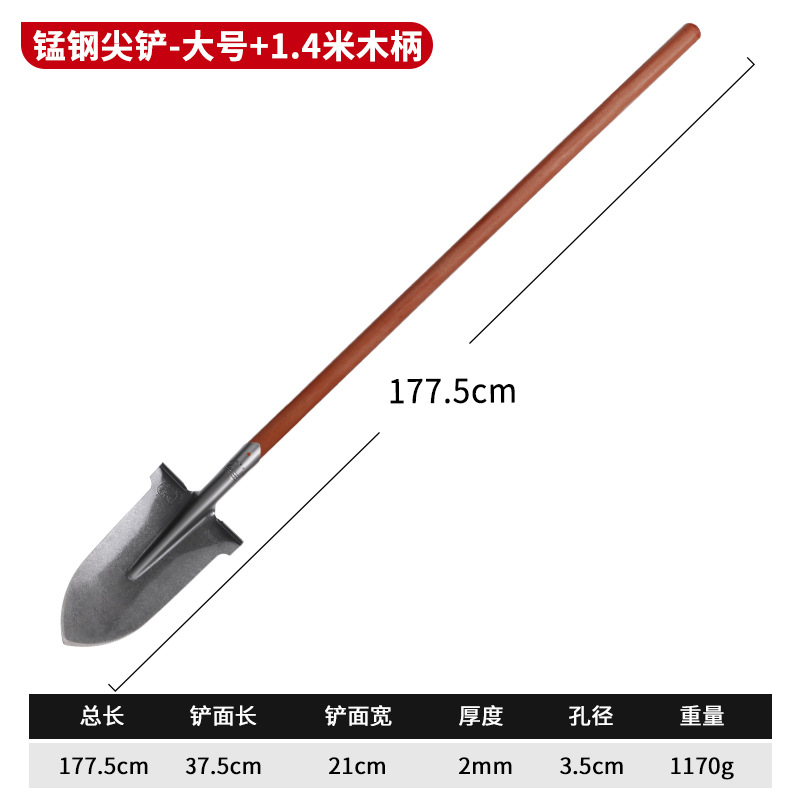 - Specifications: [Large pointed shovel] Manganese steel thickened shovel - 1.4m wooden handle