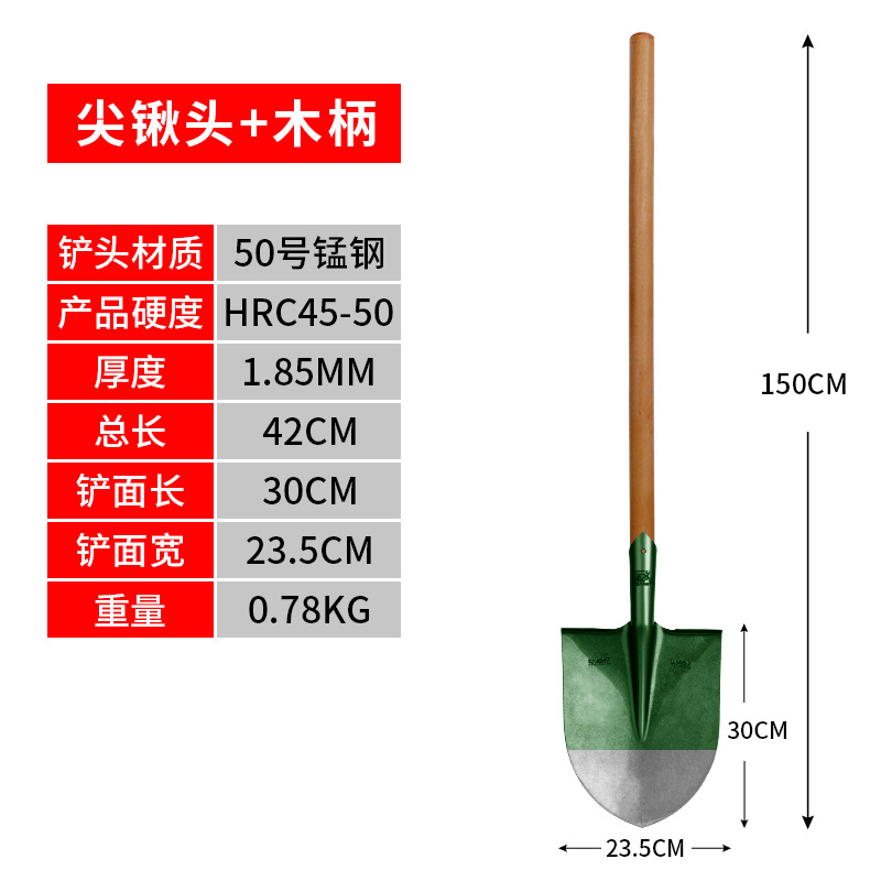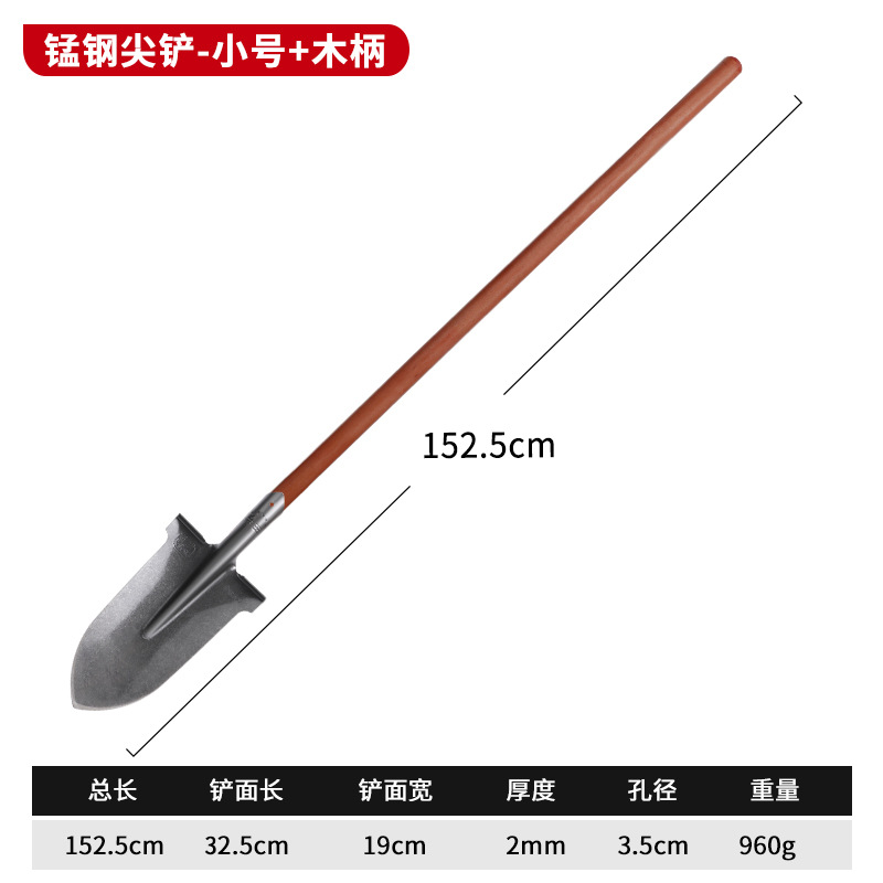 - Specifications: [Small pointed shovel] Manganese steel thickened shovel-1.2m wooden handle