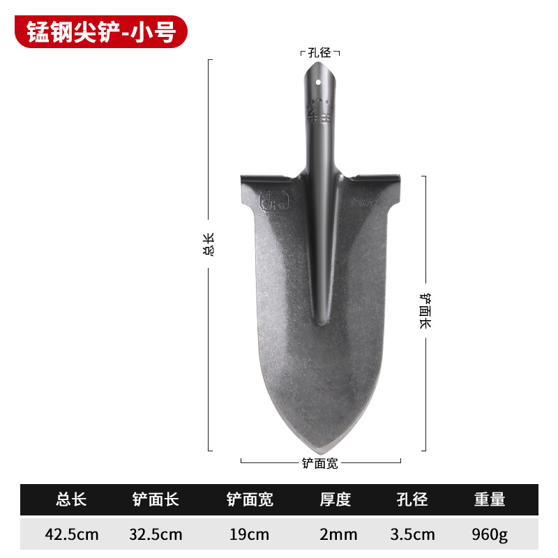 - Specifications: [Small pointed shovel] Manganese steel thickened shovel - single head
