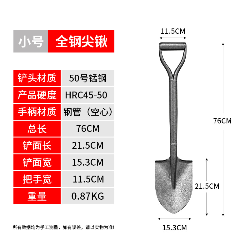 - Specifications: [Small pointed tip] One-piece manganese steel shovel