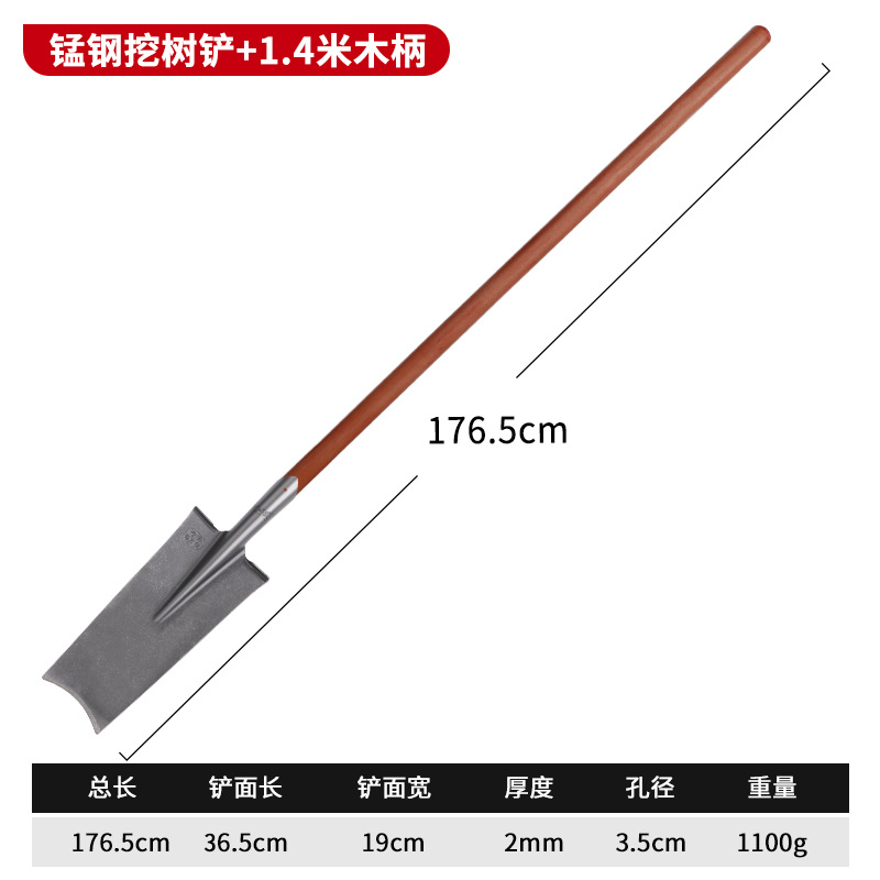 - Specifications: [Tree digging shovel] Manganese steel thickened shovel-1.4m wooden handle