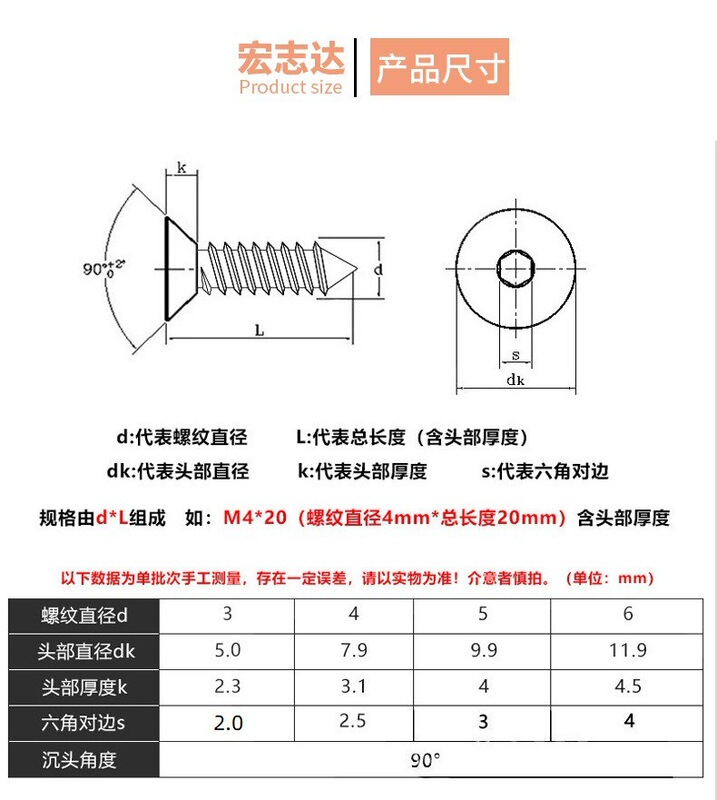 - 產品規格:M3*6