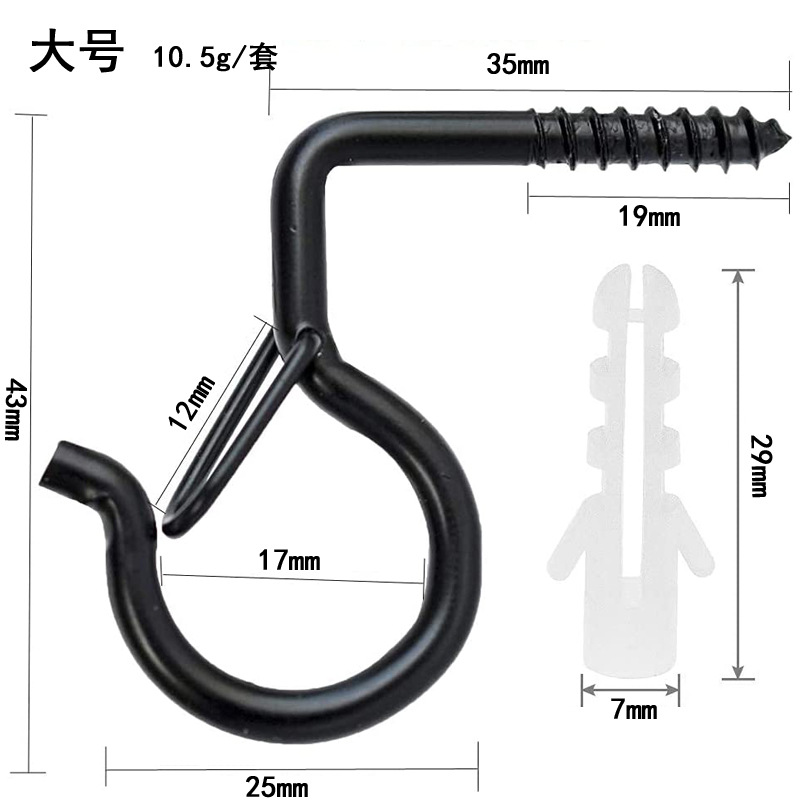 - Specifications: Black Q-shaped hook small size with expansion tube