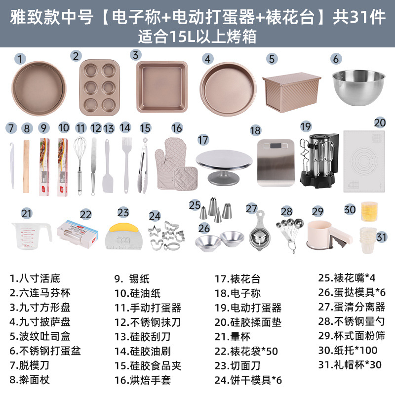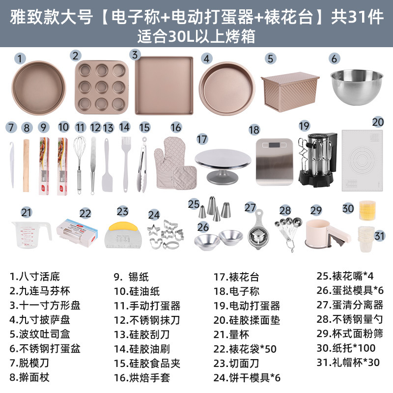 - 規格:【雅致款】中號家庭全套+裱花台(含電子秤+電動打蛋器)
