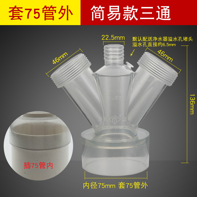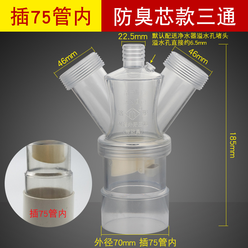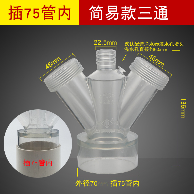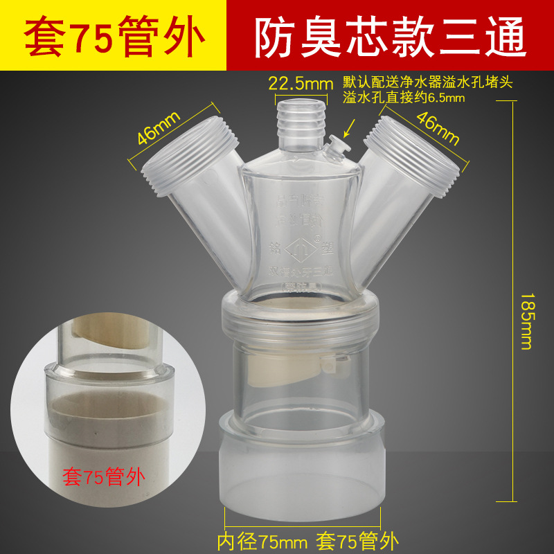 - Specifications: [Y-shaped tee] one-piece anti-overflow [inserted into 75mm pipe]