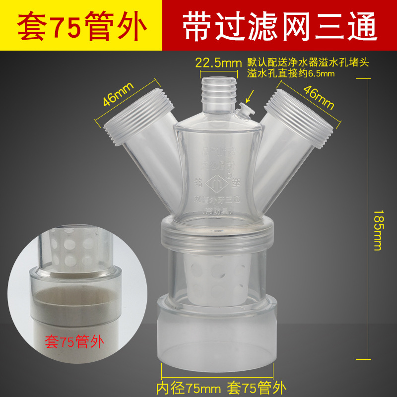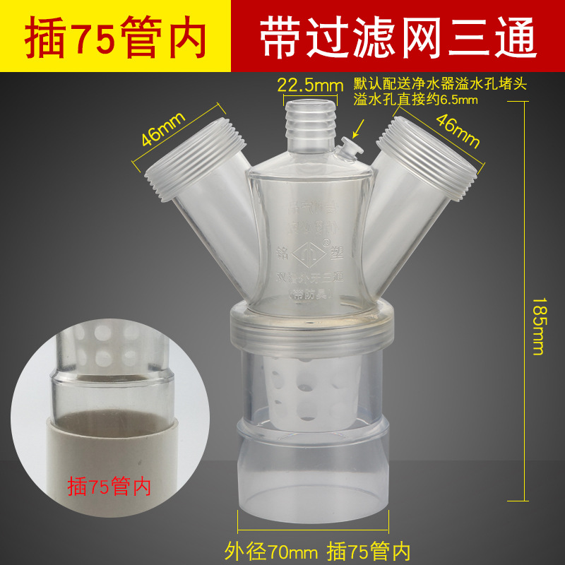 - Specifications: [Y-shaped tee] anti-overflow with filter [outer set of 75 pipes]