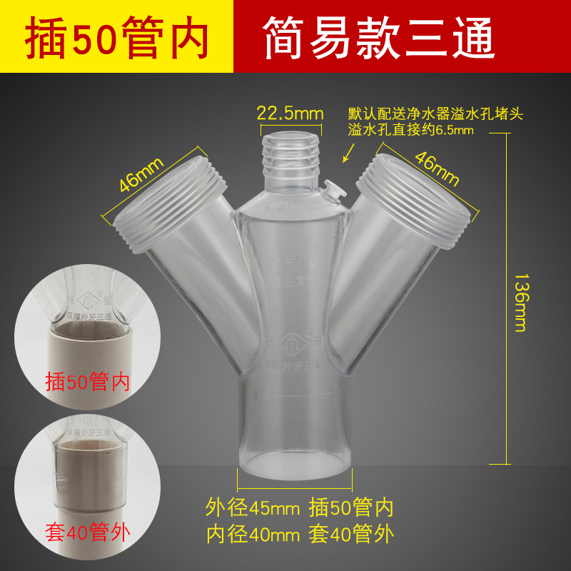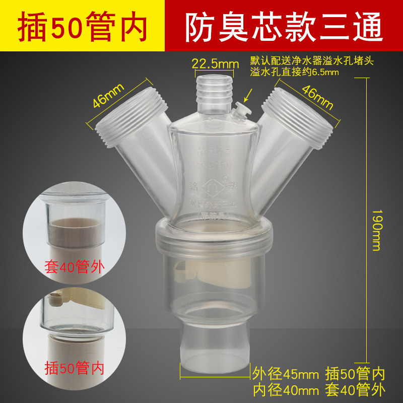 - Specifications: [Y-shaped tee] one-piece anti-overflow [inserted in 50 pipe]