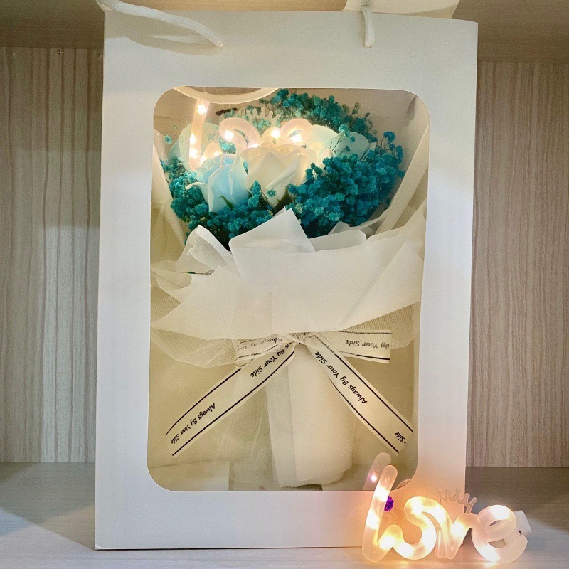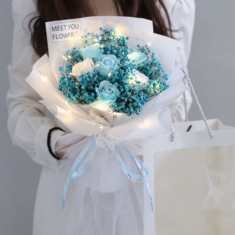 - 規格:∩藍色滿天星花束【配禮袋+彩燈+賀卡】
