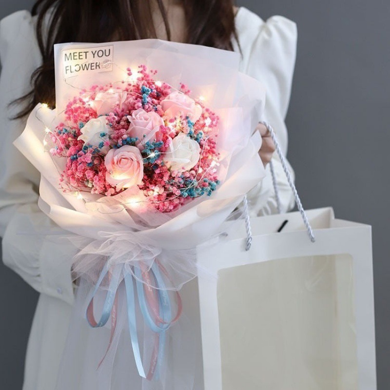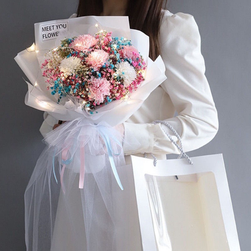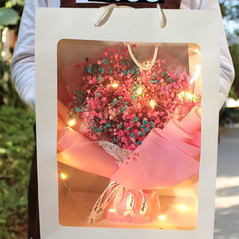 - 規格:∩粉色滿天星花束【配禮袋+彩燈+賀卡】