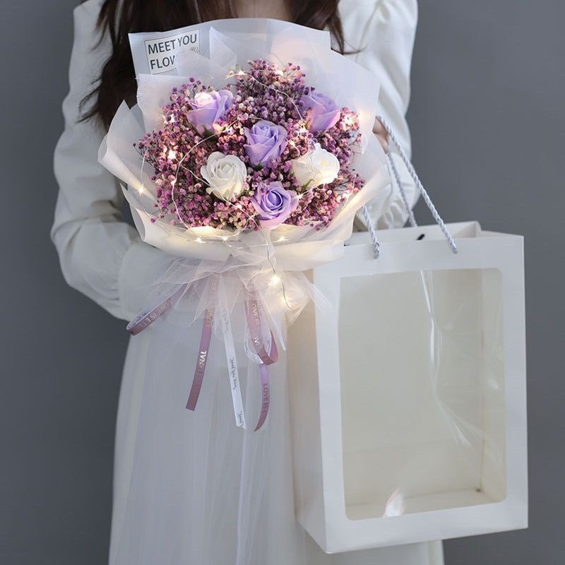 - 規格:∩紫色滿天星玫瑰【配禮袋+彩燈+賀卡】
