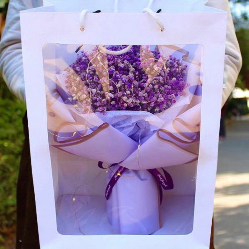 - 規格:∩紫色滿天星花束【配禮袋+彩燈+賀卡】