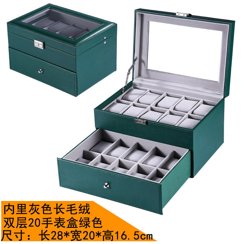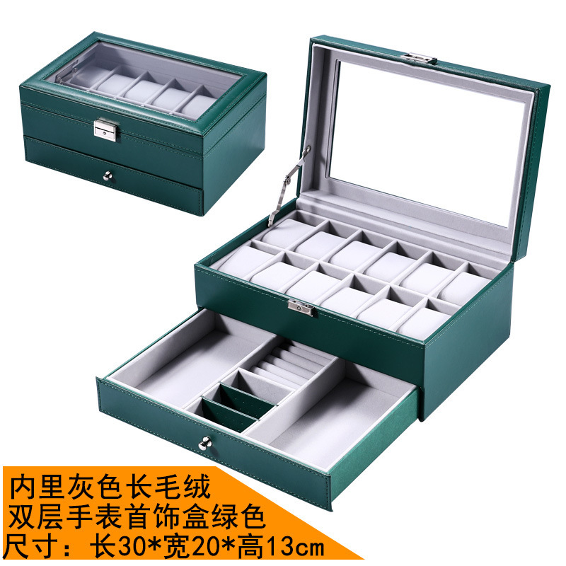 - 規格型號:精緻款雙層手錶首飾盒綠色{灰色內里珠寶絨}_通用款