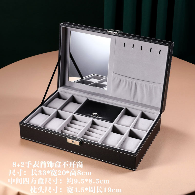 - 規格型號:精緻8+2手錶首飾盒黑色{灰色內里珠寶絨}_通用款