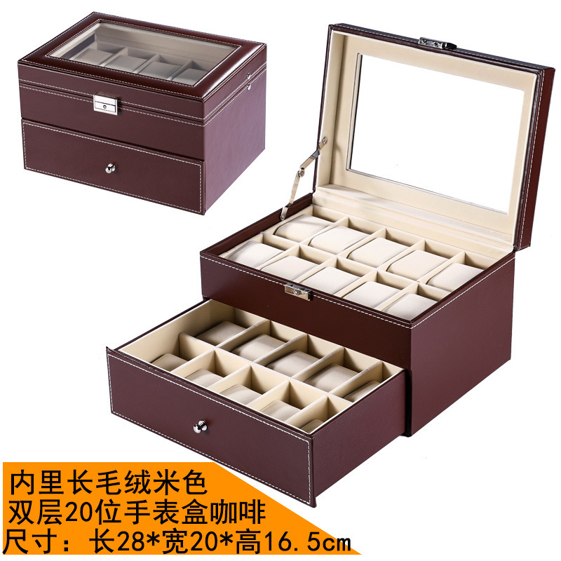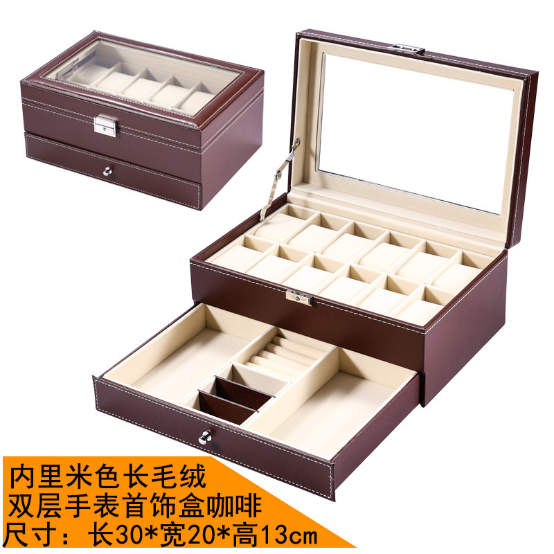 - 規格型號:精緻款雙層手錶首飾盒咖啡{米色內里珠寶絨}_通用款