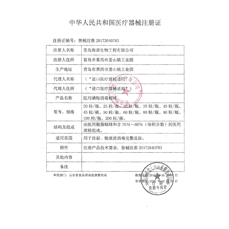 - Medicine (Equipment) Approval Number: Lu Xie Zhun Zhun 20172140783