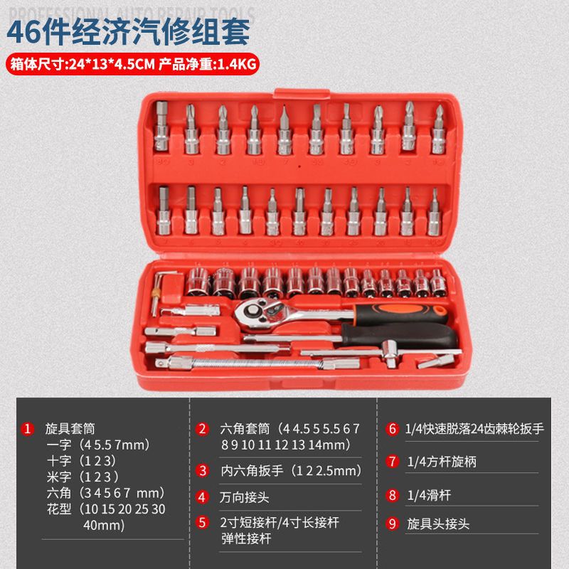 - Model: 24 teeth 46 piece set small red box