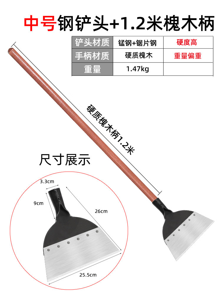 - 規格:中號剷頭+1.2米槐木柄(重量偏重)