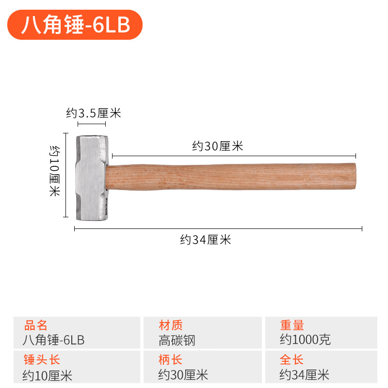 - Model: Octagonal hammer with wooden handle (6LB)