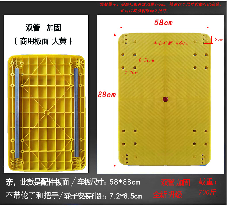 - 型號:雙管加固商用板面大黃58*88cm