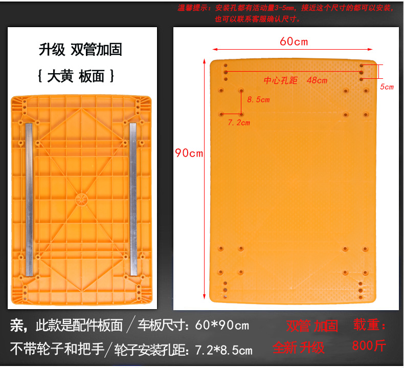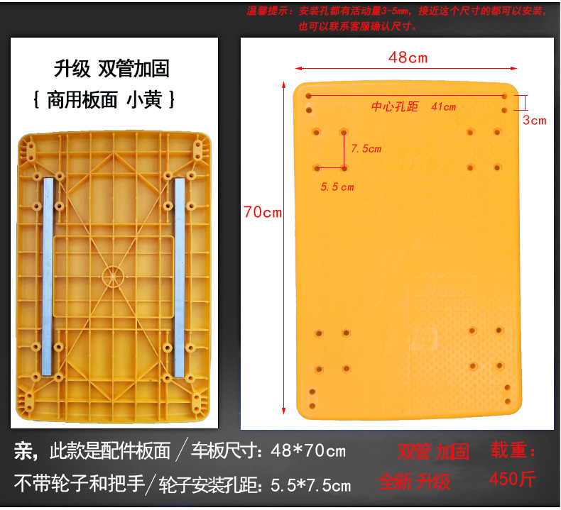 - 型號:雙管加固商用板面小黃48*70cm