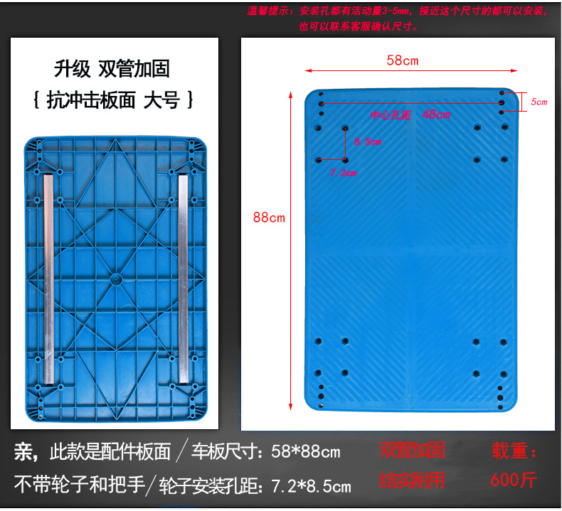 - 型號:雙管加固抗衝擊板面大藍58*88cm