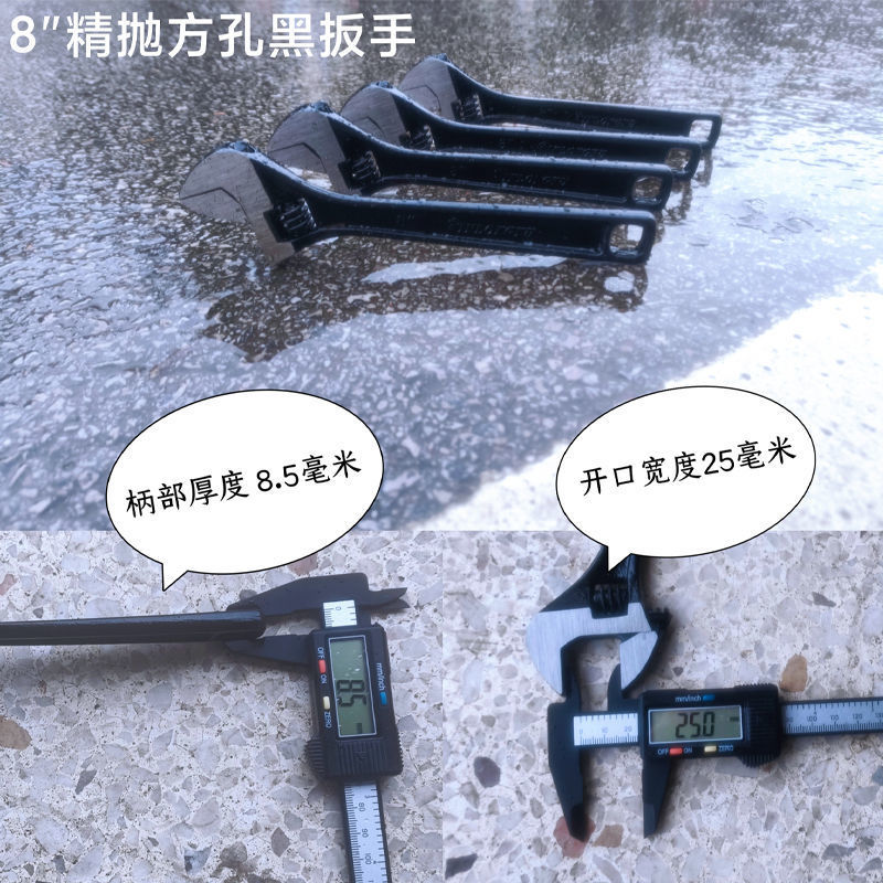 - Specifications and models: 8-inch premium black wrench - thickened square hole