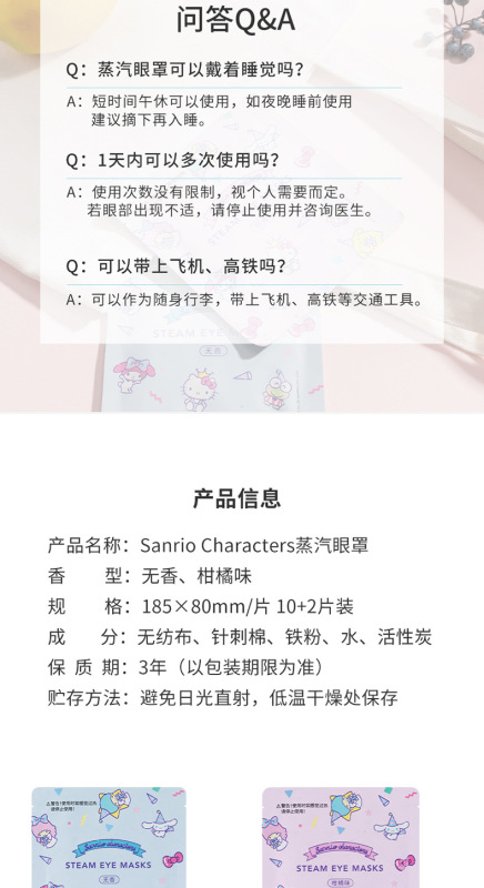 - Specifications: SanrioCharacters Steam Eye Mask (Citrus Flavor) (10+2 pieces)