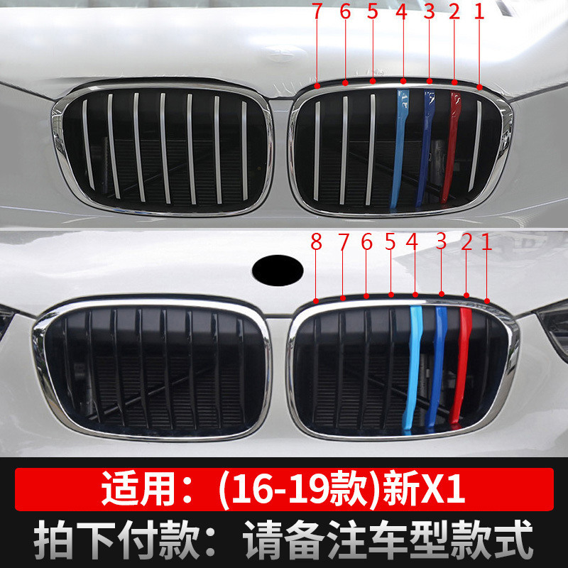 - Model: BMW front grille three-color strip clip-in style