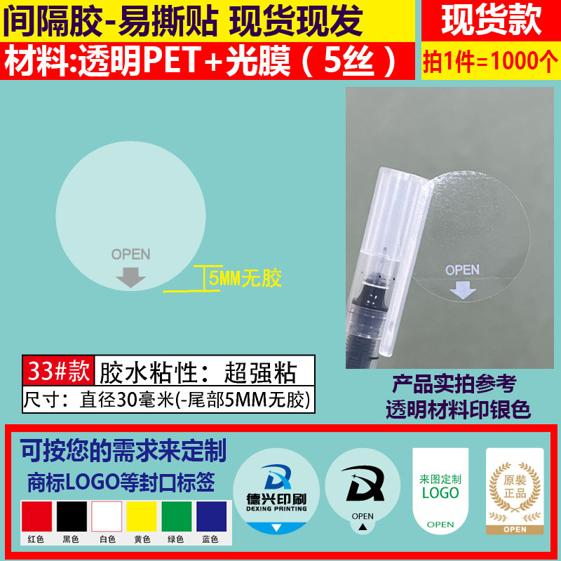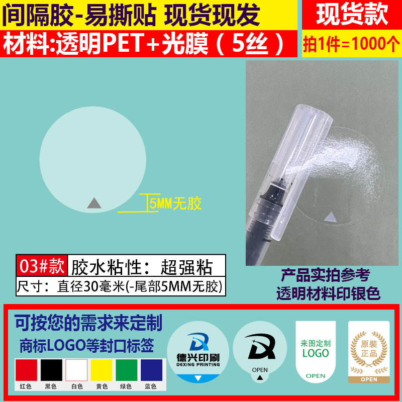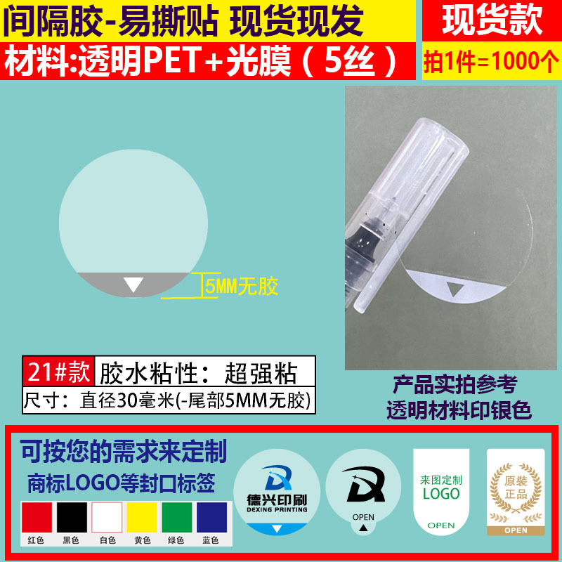 - Model number: 21#30MM-5MM no adhesive *= 1000 pieces