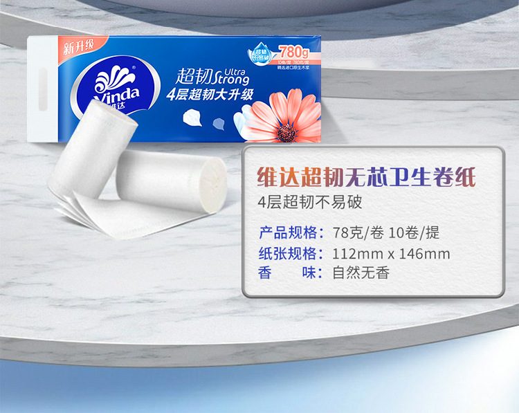 - Product specifications: V4143-A-1 [Vinda Super Tough 78g Coreless Rolling Paper] 4 layers x 78g x 10 rolls / 1 lift