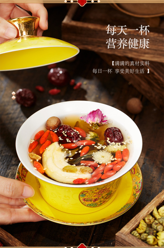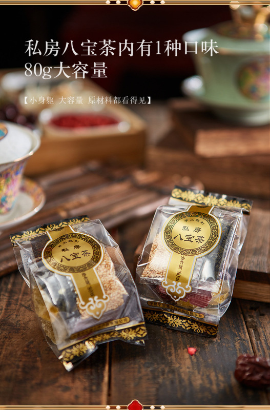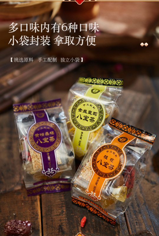 - Raw materials and ingredients: wolfberry, red dates, raisins, dried fruits, longan, tea, rock sugar, sesame seeds