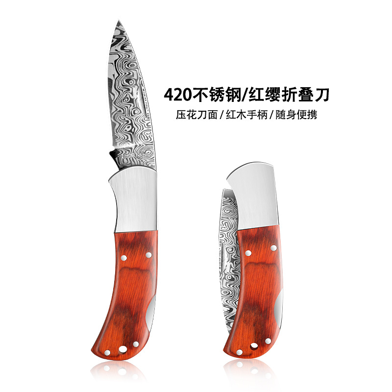 - Specification:Patterned red wood folding knife