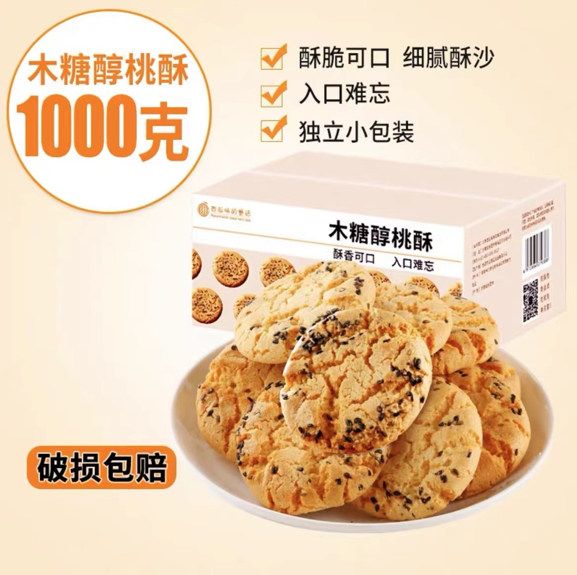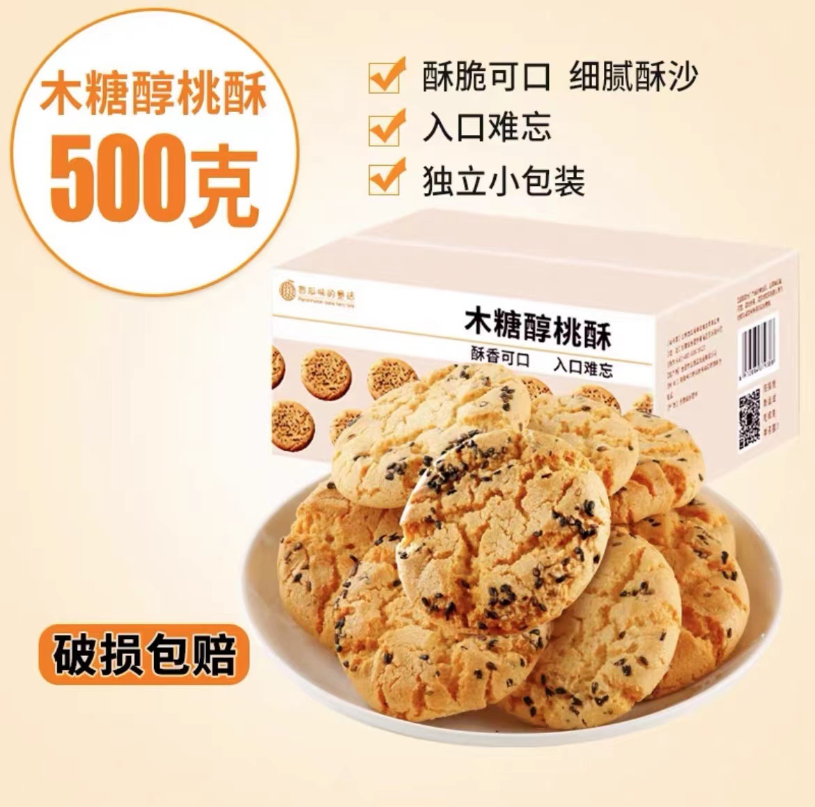 - 包裝規格:木糖醇桃酥500g/箱*2
