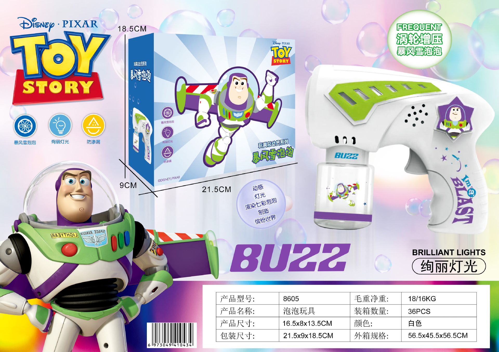 - 功能:燈光、自動出泡