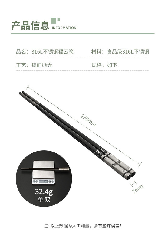 - 規格:316L不鏽鋼福字筷子
