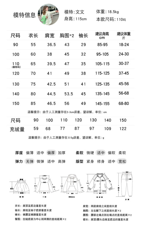 - 適合身高:140cm【充絨量109克】