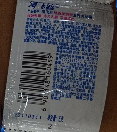 - 產品名稱:海飛絲絲質柔滑型去屑洗髮露5G