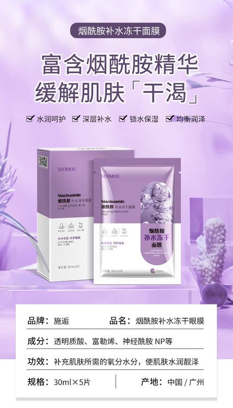 - 產品名稱:煙酰胺補水凍乾麵膜