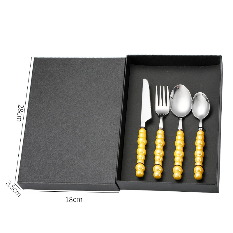 - 規格:珍珠刀叉勺4件套禮盒-深黃色