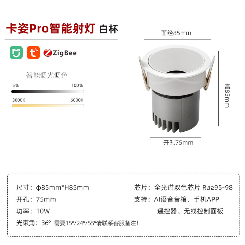 - Power: smart spotlight/white cup/10W/opening 75