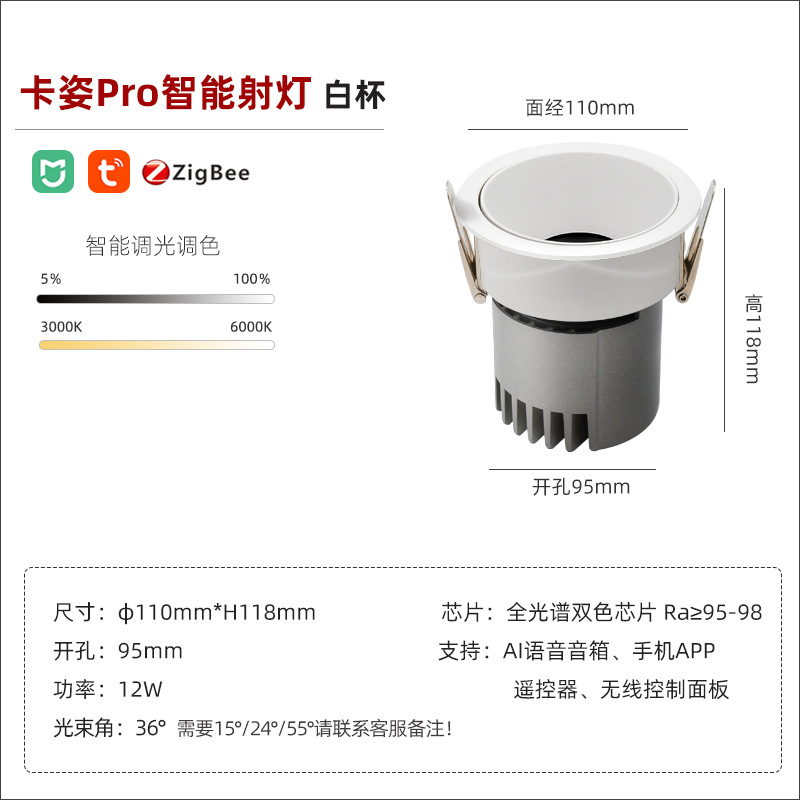 - Power: smart spotlight/white cup/12W/opening 95