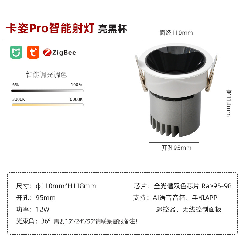 - Power: smart spotlight/bright black cup/12W/opening 95