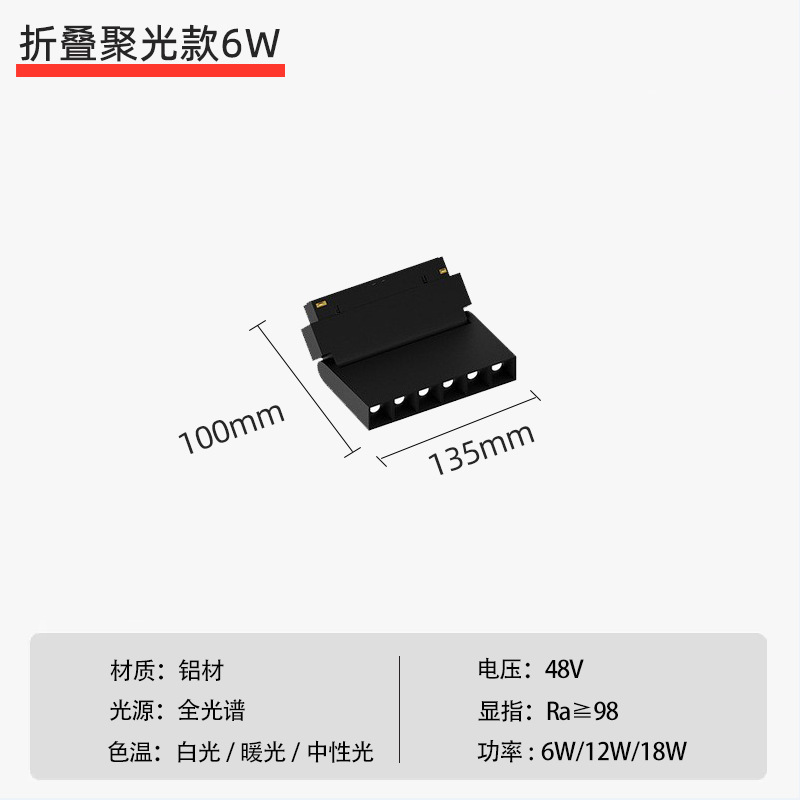 - Color temperature: Folding spotlight 135mm-6W