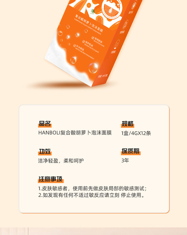 - Product Specifications: Carrot Foam Mask
