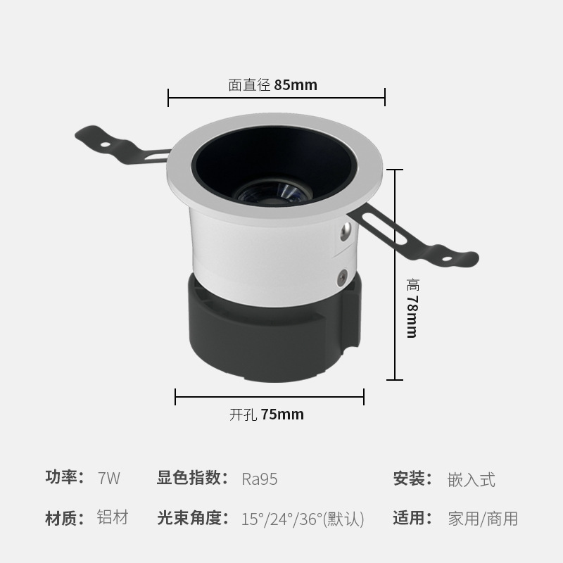 - Power: Dark Grey 7W - 75mm Hole