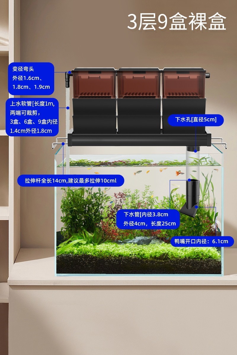 - Specifications: [Lazy person package] 9 boxes + 25w bottom suction pump + filter material package