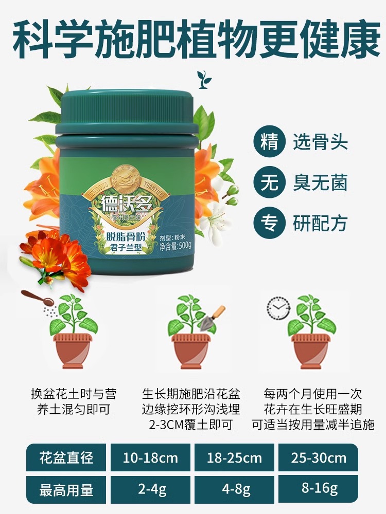 - Particle size specification: Dewoduo defatted bone meal 500g-Clivia type