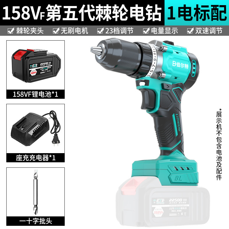 - Specifications and models: Ratchet chuck 158VF, one battery and one charge