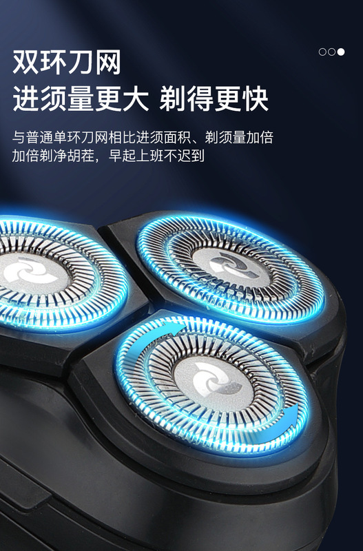 - Shaver head: rotating 3-blade head