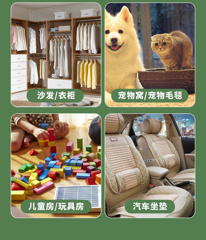 - Function: Air freshening, deodorizing, mite control